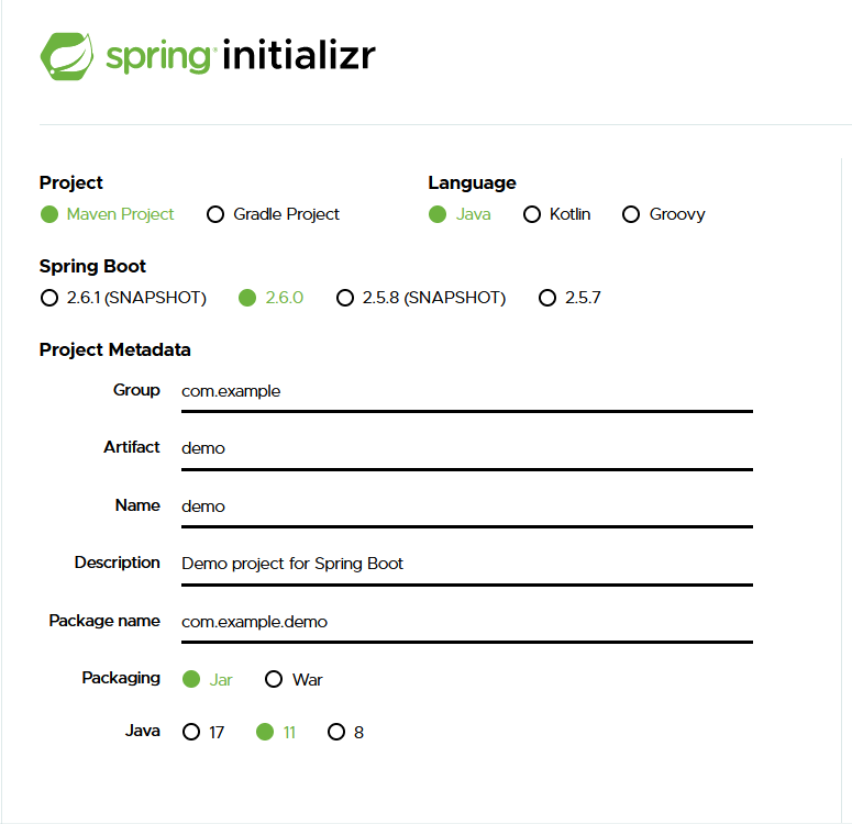 이전에는 sts tool에서 springboot 세팅을 했었다. spring boot의 장점 중 하나는 tool에 상관없이 spring initializr 홈페이지에서도 환경설정이 가능하다는 것이다.