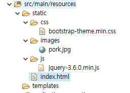 Static은 url이 노출되지 않음으로 css image js파일을 넣을 것임으로 각각의 폴더를 생성하고 templates폴더에는 thymeleaf가 포함되어야 하는 html을 넣어야 인식을 제대로 할 수 있다.