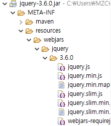 이전에는 폴더에 직접 넣어서 bootstrap과 jquery를 이용했지만 webjar를 통해서 별도의 설치없이 사용이 가능하다.